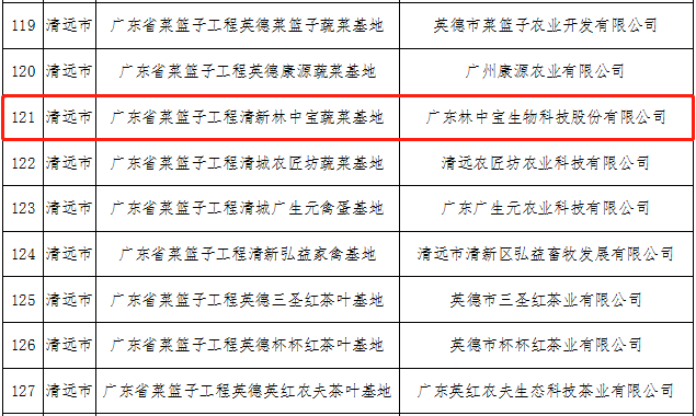 近日,廣東省農(nóng)業(yè)農(nóng)村廳發(fā)布了關(guān)于對(duì)2022年廣東省“菜籃子”基地和省級(jí)農(nóng)產(chǎn)品定點(diǎn)批發(fā)市場(chǎng)名單予以公示的公告。公告顯示,清遠(yuǎn)市38個(gè)基地被列入2022年廣東省“菜籃子”基地?cái)M通過(guò)名單(初評(píng)9個(gè)、復(fù)審29個(gè)),1個(gè)基地被列入2022年省級(jí)農(nóng)產(chǎn)品定點(diǎn)批發(fā)市場(chǎng)評(píng)審?fù)ㄟ^(guò)名單,其中,我會(huì)理事單位廣東林中寶生物科技股份有限公司入選2022年廣東省“菜籃子”基地公示名單。