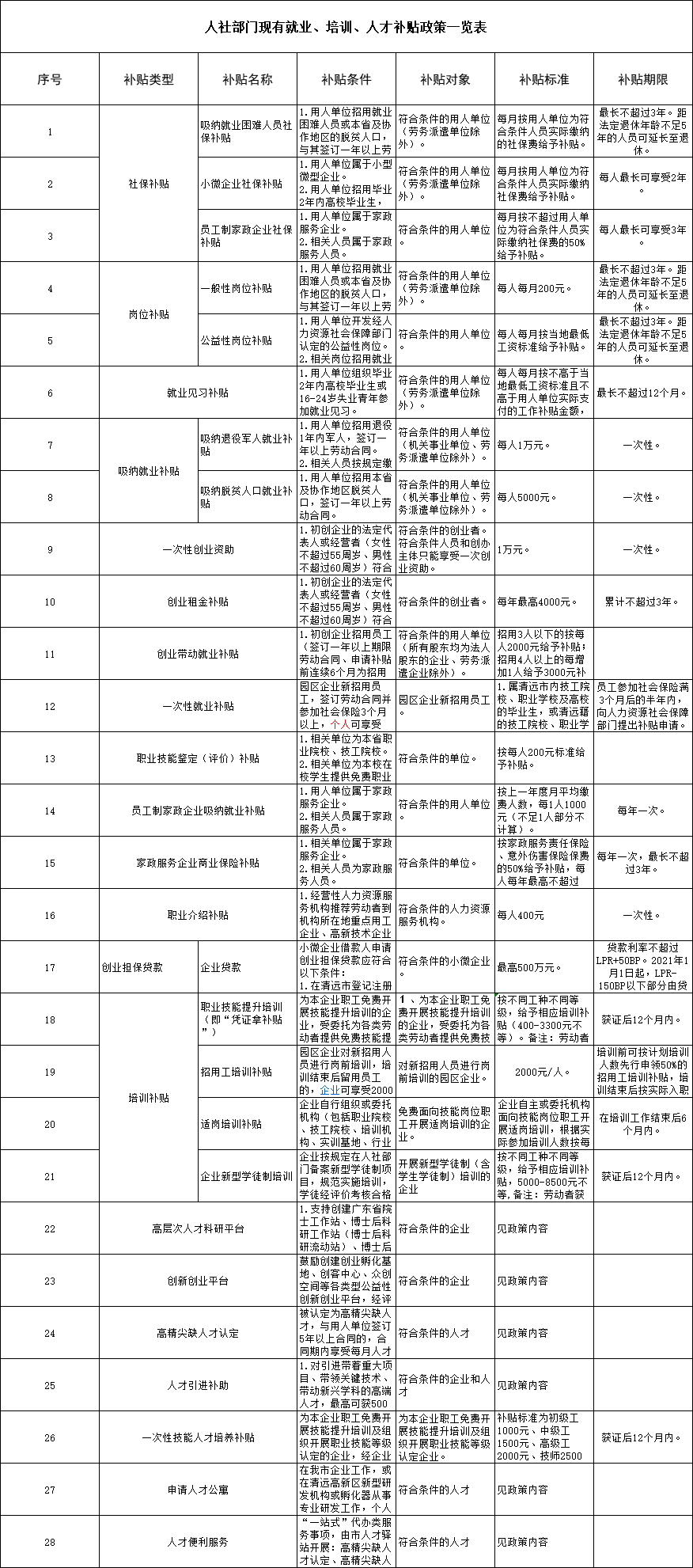 詳見(jiàn)附件:人社部門(mén)現(xiàn)有就業(yè)、培訓(xùn)、人才補(bǔ)貼政策一覽表