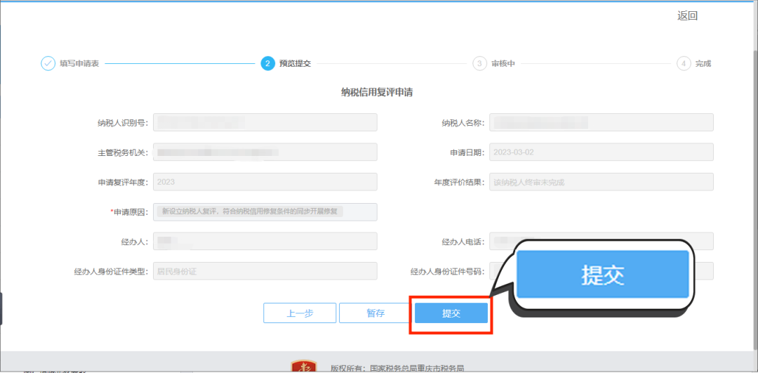 第三步:核對無誤后,點(diǎn)擊【提交】即可完成。