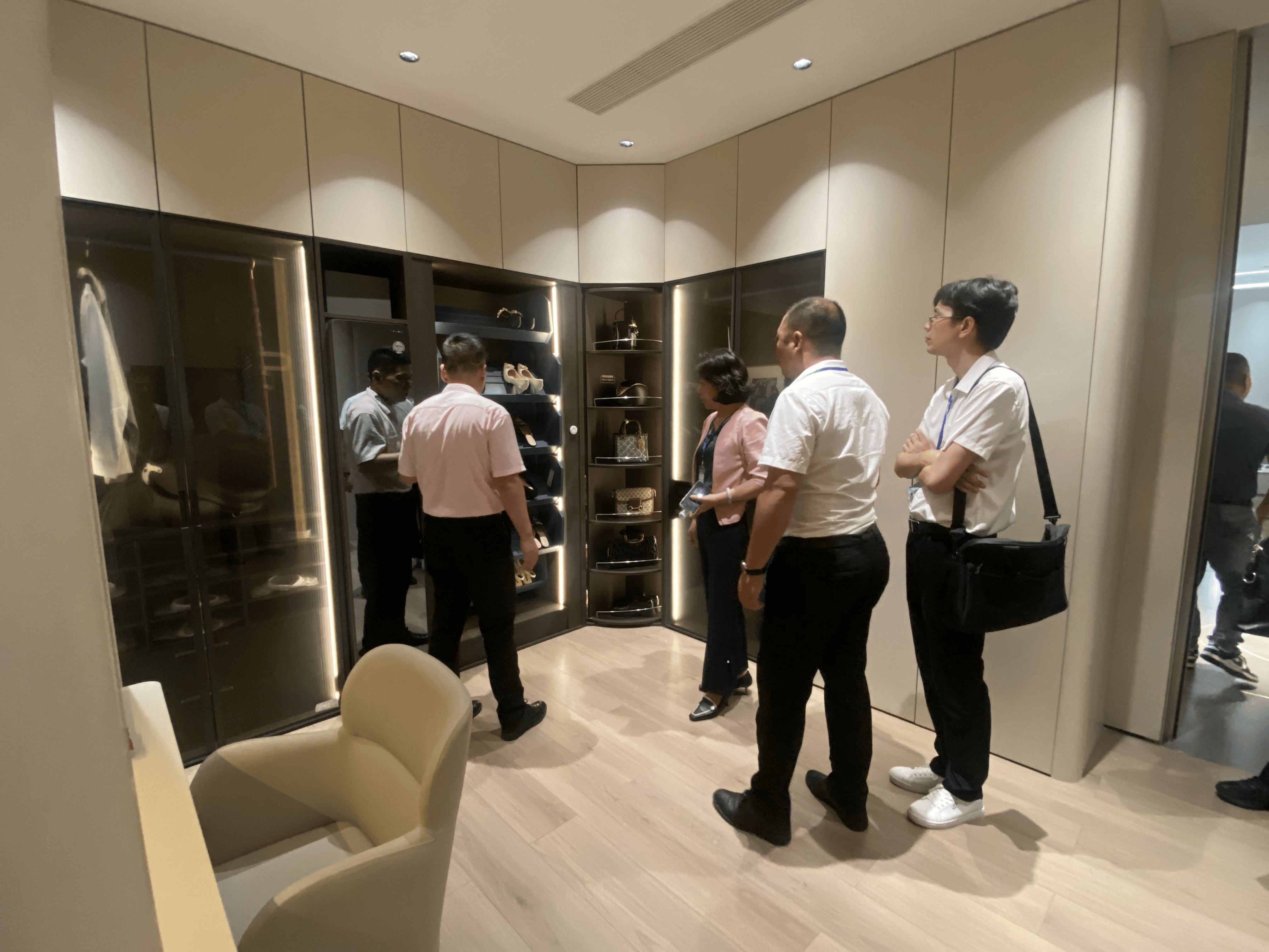 企業(yè)代表們在家居研究院院長陳勇剛和人力資源部經(jīng)理陳耀文的帶領(lǐng)下,參觀了企業(yè)展廳及生產(chǎn)車間,親眼見證了從原材料到成品的華麗蛻變。讓企業(yè)代表們對卡諾亞家居的生產(chǎn)實力與質(zhì)量控制體系有了更加直觀的認(rèn)識。