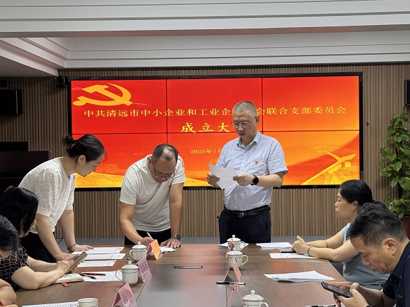 7月29日下午,聯(lián)合黨支部成立大會在清遠(yuǎn)市中小企業(yè)協(xié)會八樓會議室召開。會議嚴(yán)格依照《中國共產(chǎn)黨章程》和《中國共產(chǎn)黨基層組織選舉工作條例》規(guī)定,通過民主選舉產(chǎn)生了第一屆支部委員會及支部書記,確保了黨組織建設(shè)的規(guī)范性和嚴(yán)肅性。